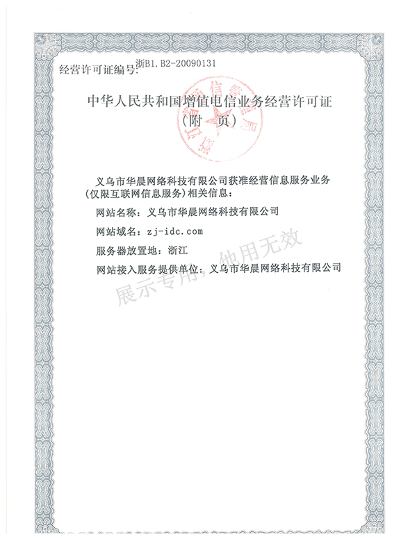 《增值電信業(yè)務(wù)經(jīng)營(yíng)許可證 ISP/IDC:浙B1.B2-20090131》